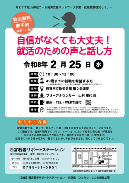 【参加者募集】自信がなくても大丈夫!就活のための声と話し方