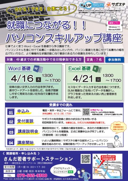 【参加者募集中】就職につながる!!パソコンスキルアップ講座(4月)