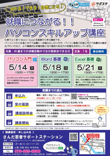 【参加者募集中】就職につながる!!パソコンスキルアップ講座(5月開催)