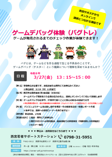 【参加者募集】3/27(金)ゲームデバッグ体験講座(バグト…