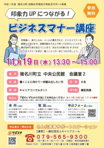【参加者募集】令和7年度 猪名川町 就職氷河期世代等就労サ…