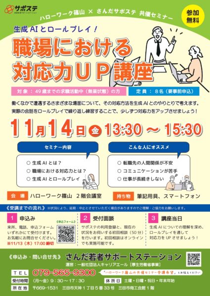 【参加者募集】ハローワーク篠山×さんだサポステ共催セミナー…