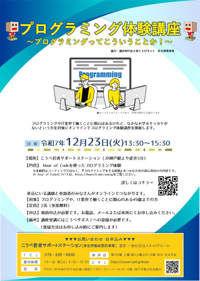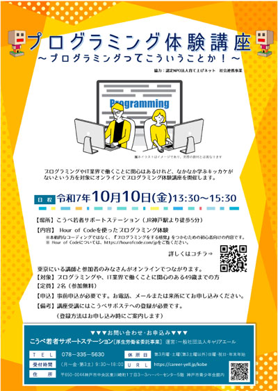 【参加者募集中】プログラミング体験講座~プログラミングってこういうことか!~