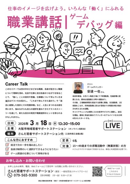 【参加者募集】仕事のイメージを広げよう。いろんな「働く」にふれる『職業講話 ゲームデバッグ編』