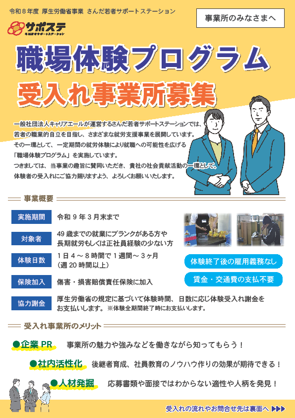 【受入れ事業所募集】職場体験プログラム