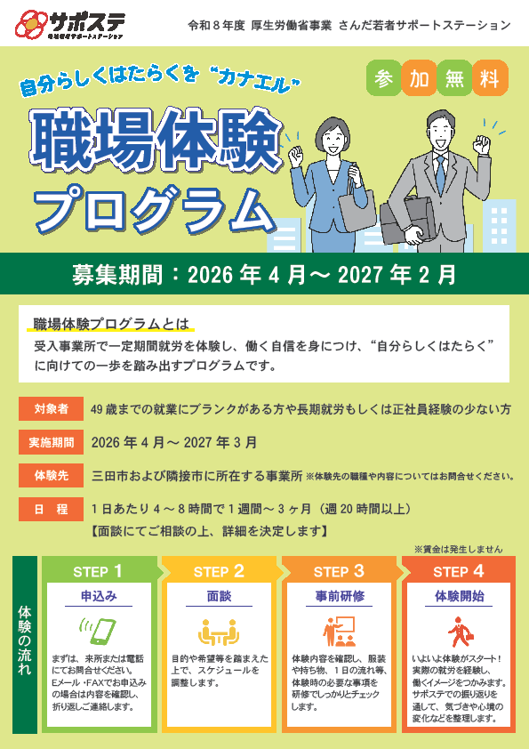 【参加者募集中】職場体験プログラム